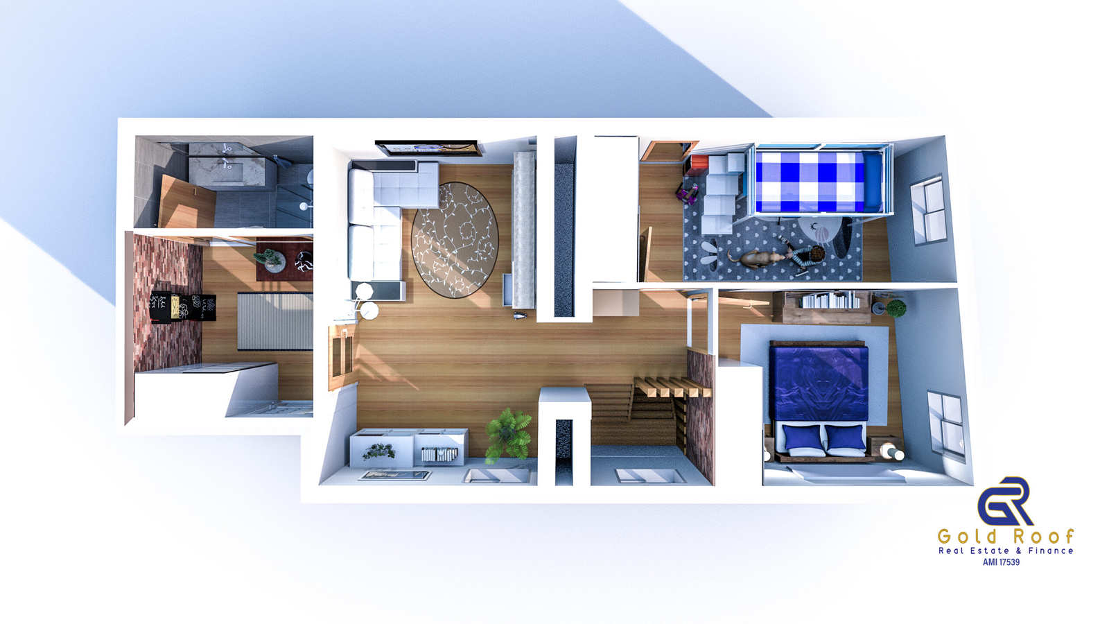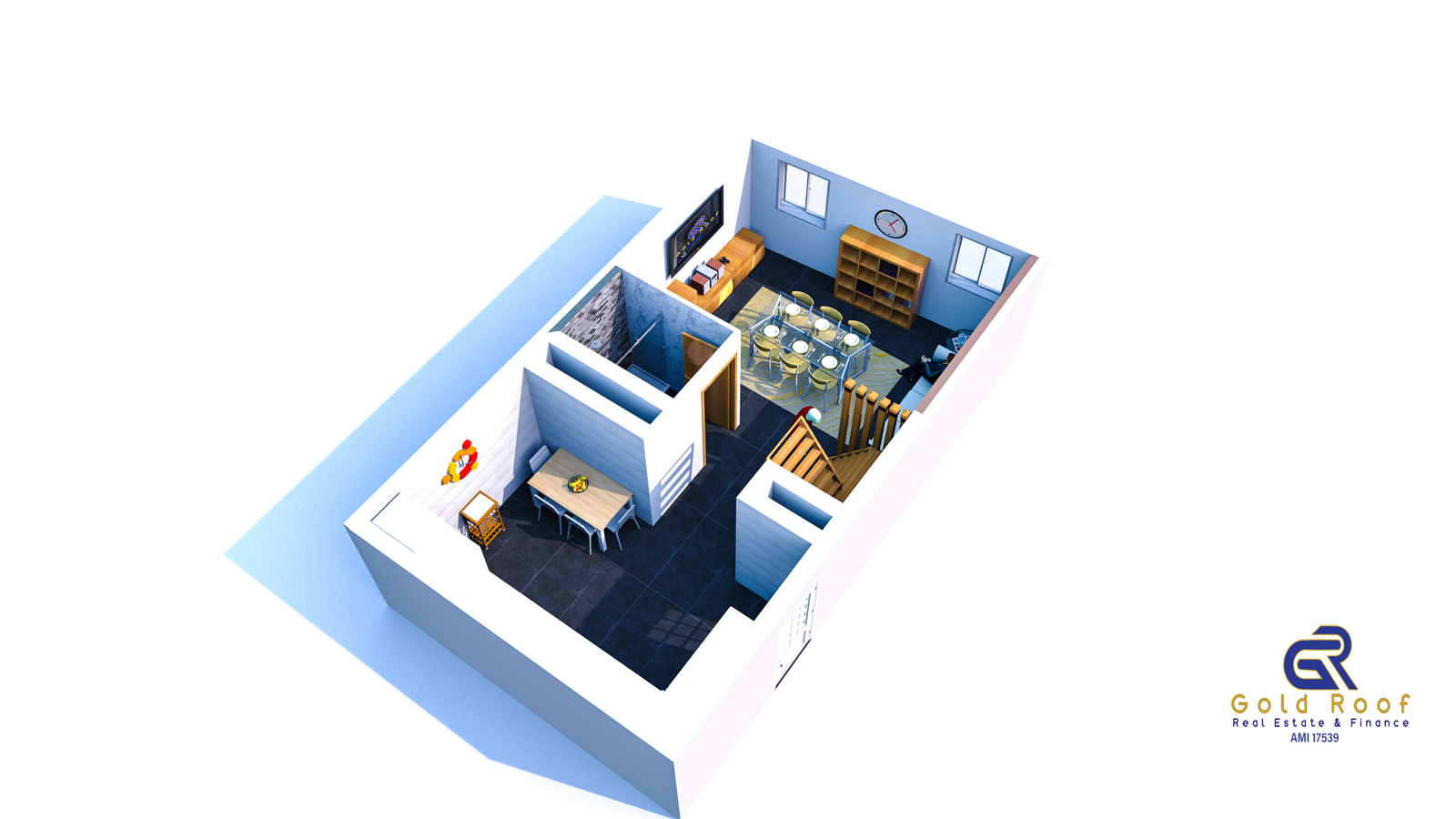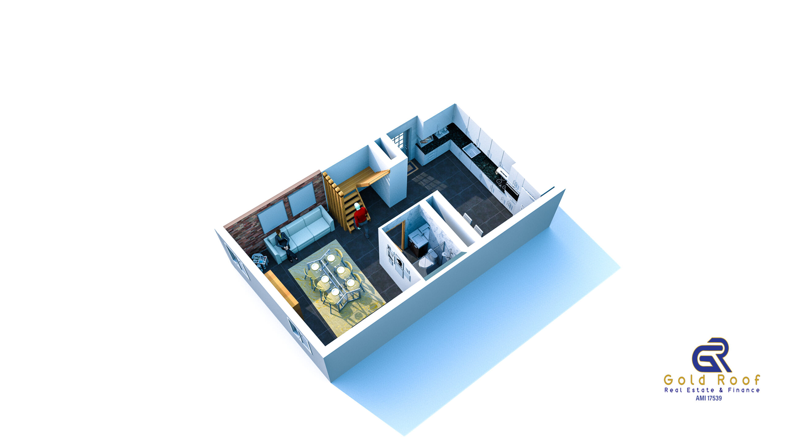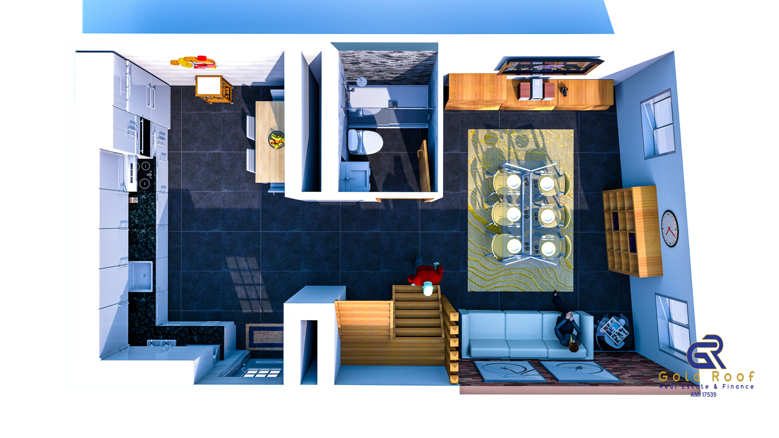 Ground floor consisting of large furnished and equipped kitchen with meal area, partial “open space” system with dining room, full bathroom with shower base, suspended staircase with wooden steps for access to the upper floor.